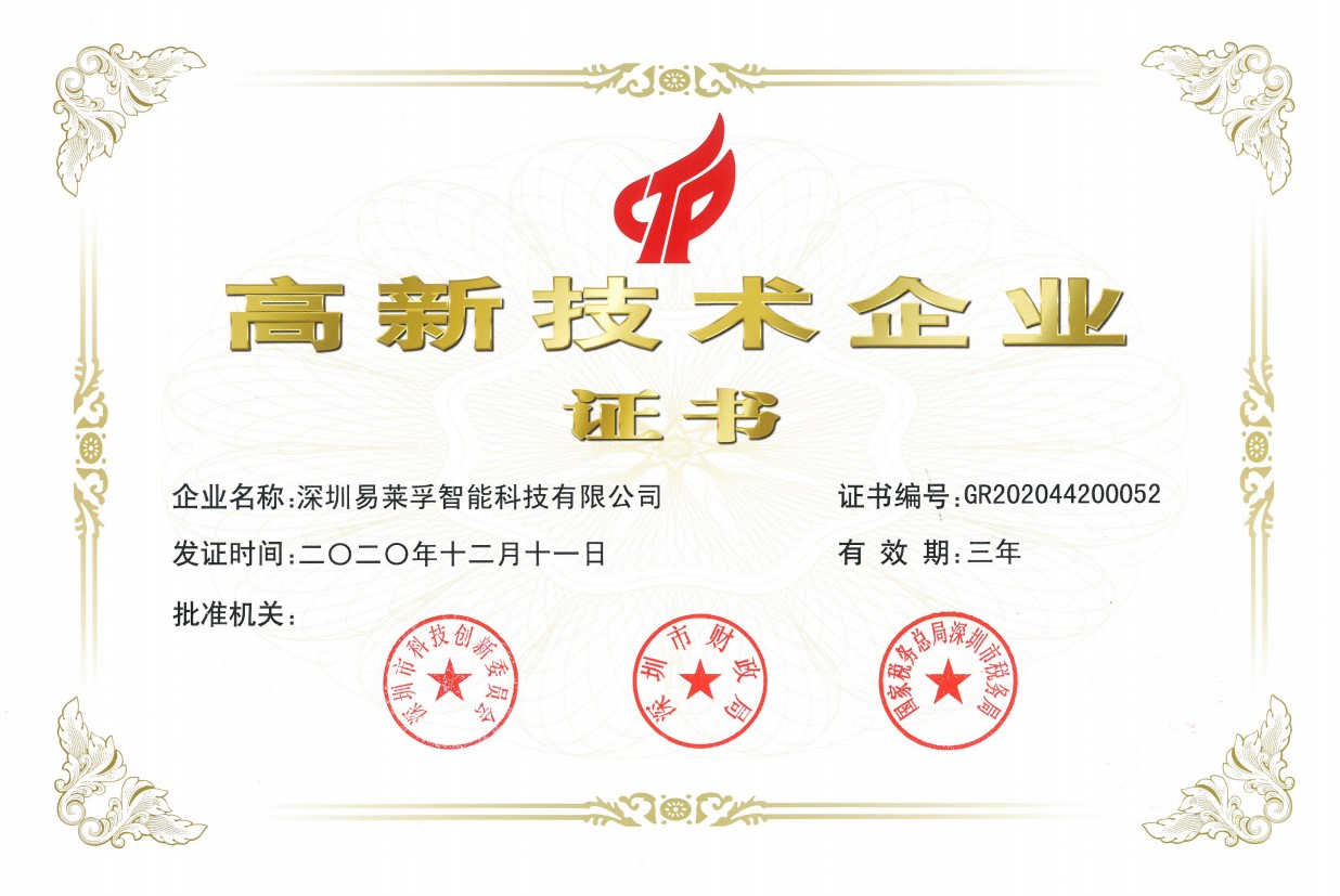 喜訊|熱烈祝賀易萊孚榮獲“高新技術(shù)企業(yè)”證書(shū)!